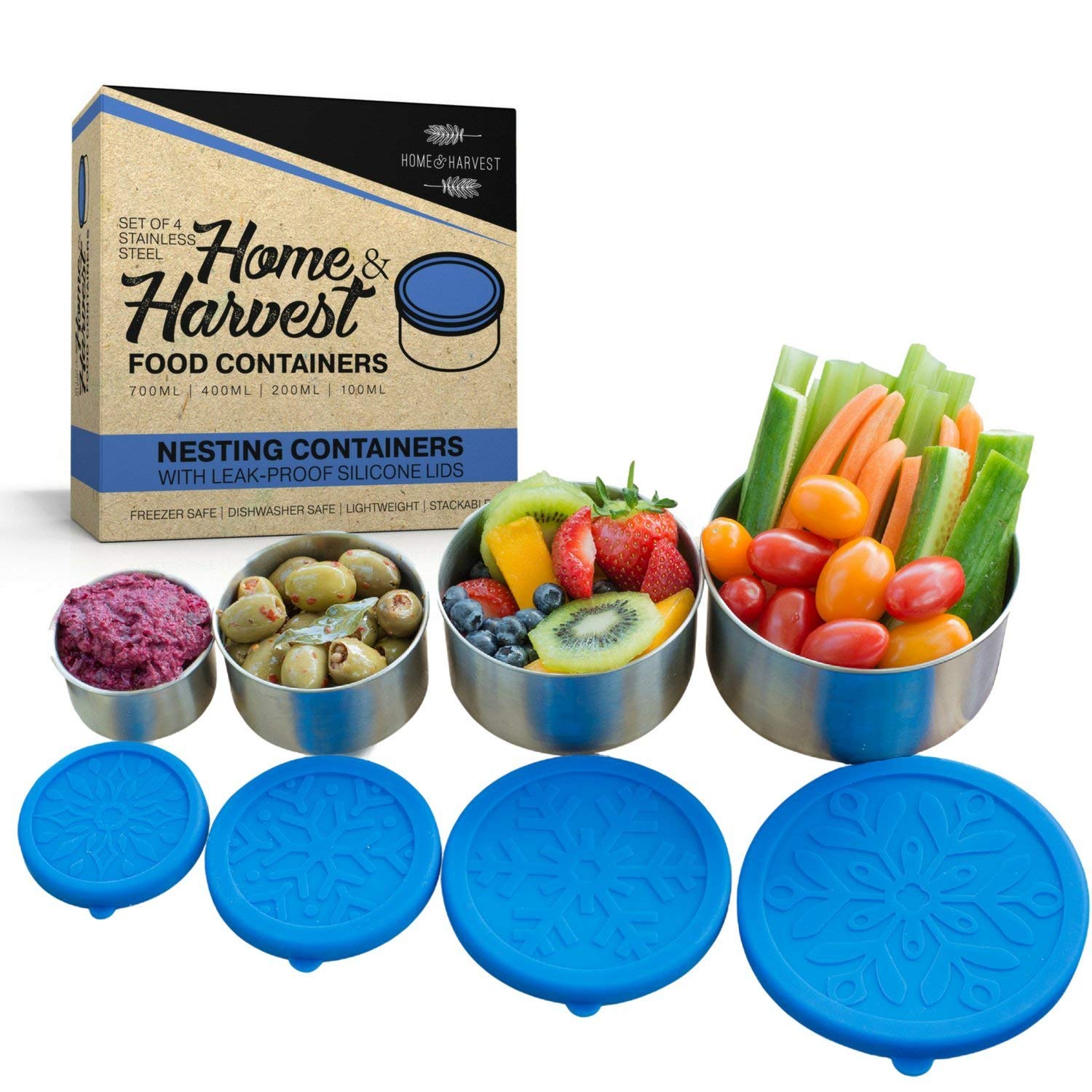 These nesting containers are perfect sizes for transporting lunch/snacks and have silicone lids that are easy for children to remove.